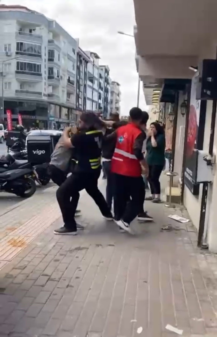 Kısa sürede büyüyen tartışma yerini kavgaya bırakınca taraflar birbirlerine sopa, yumruk ve tekmelerle saldırdı. Caddenin boks ringini aratmadığı kavga anı ise kameraya yansırken, çevredekiler tarafları güçlükle ayırdı.