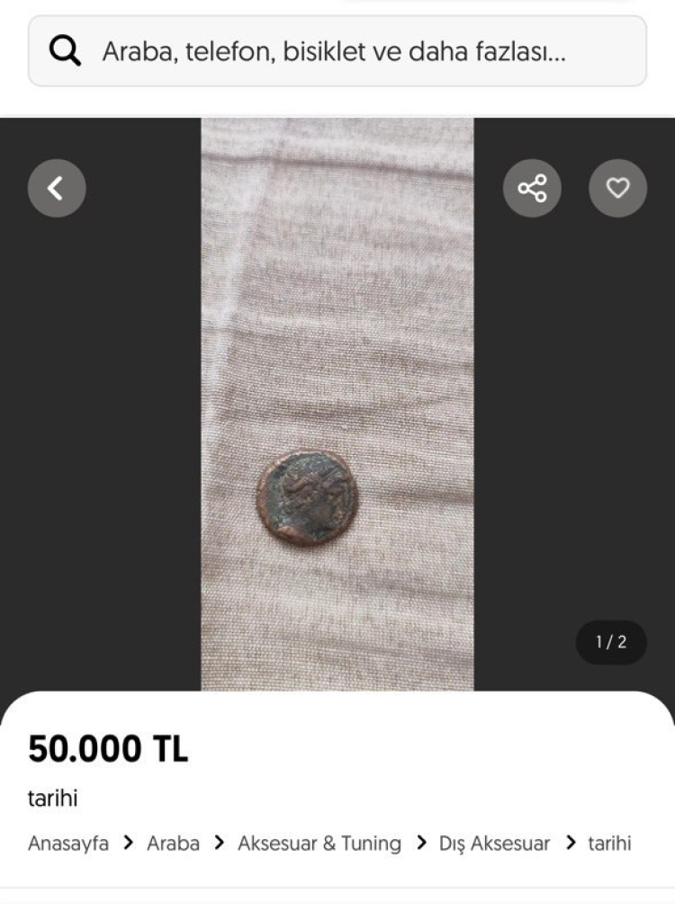 Bursa'nın İznik ilçesinden çıkarıldığı düşünülen 2000 yıllık sikkeler, internet üzerinden satışa sunuldu.