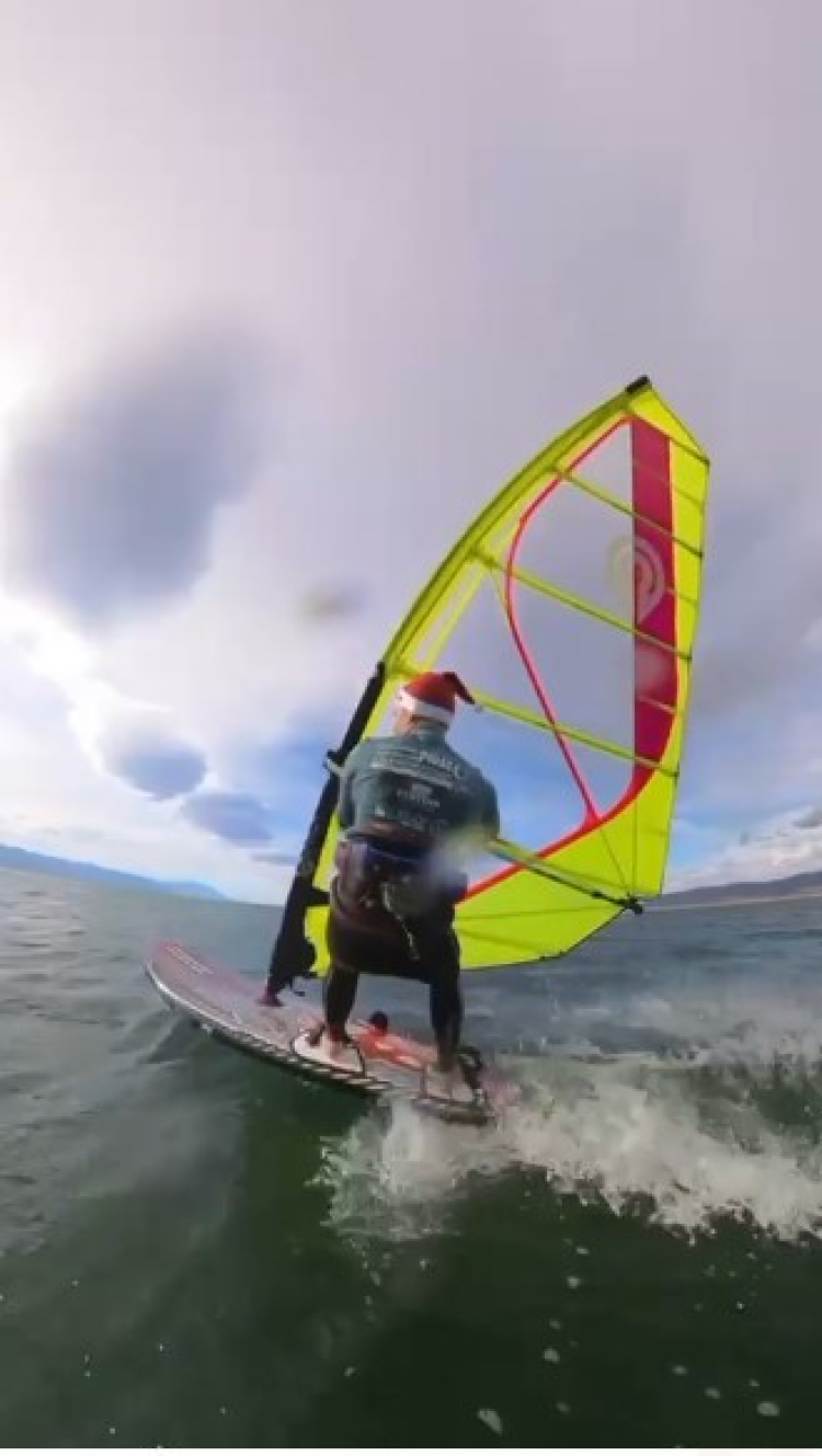 Bursa'nın İznik ilçesinde bir grup yeni yılın ilk sabahı buz gibi gölde yelken sörfü yapıp metrelerce yüzdü.