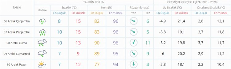 5 GÜNLÜK HAVA DURUMU TAHMİNİ
