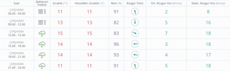 Aralıklı yağmur ve sağanak yağışlı geçeceği tahmin ediliyor. Yağışların öğle saatlerinden sonra yer yer kuvvetli olması bekleniyor.
