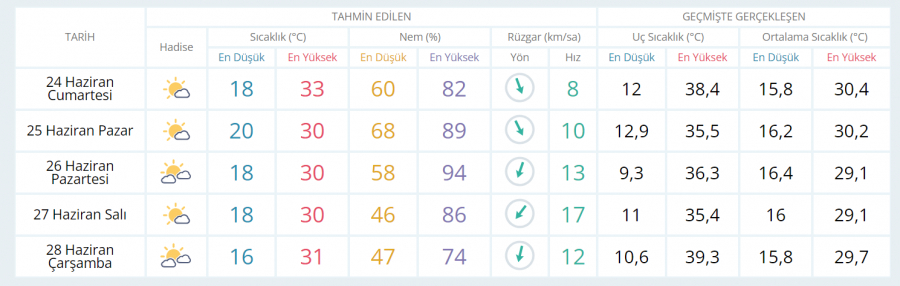 5 GÜNLÜK HAVA DURUMU TAHMİNİ