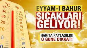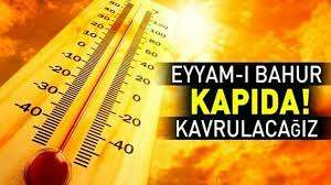 Haftanın son iş gününde ise (CUMA) sabah saatlerinde 22 derece olarak ölçülen hava sıcaklığının yanı sıra bol güneşli gökyüzüyle birlikte Eyyam-ı Bahur sıcaklığının etkisi termometreleri 39 derecelere kadar tırmandırıyor.