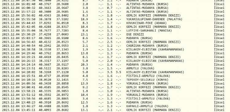 Can ya da mal kaybının yaşanmadığı deprem, vatandaşlar arasında paniğe neden olurken Boğaziçi Üniversitesi Kandilli Rasathanesi Ve Deprem Araştırma Enstitüsü verilerine göre son 24 saat içinde Bursa ve Yalova illerinde 100’ün üzerinde farklı büyüklüklerde artçı meydana geldi.