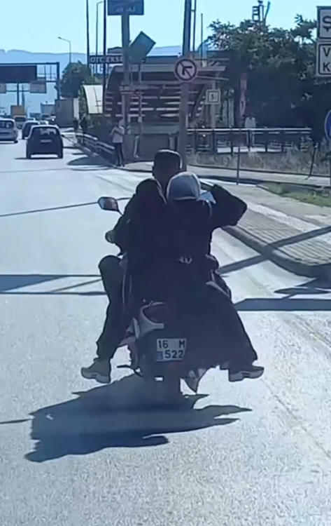 Bursa'da 5 kişilik bir ailenin motosiklette tehlikeli yolculuğu ile kamyonun kasa kapasitesinden fazla yük taşıması, trafikteki başka sürücüler tarafından kaydedildi.