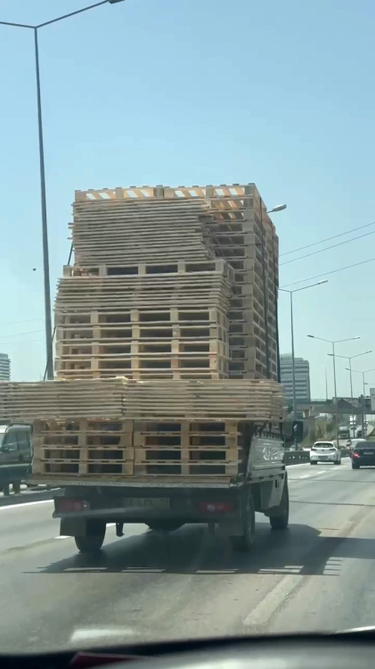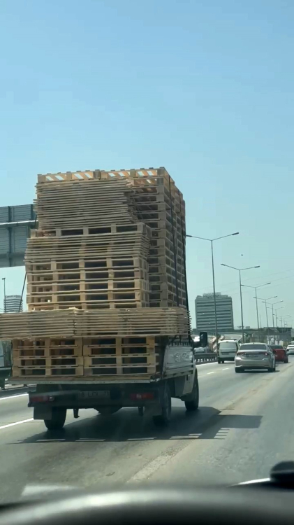 Mudanya Bulvarı üzerinde seyir halinde olan kamyonet, kasasında kapasitesinden fazla palet taşıdı.