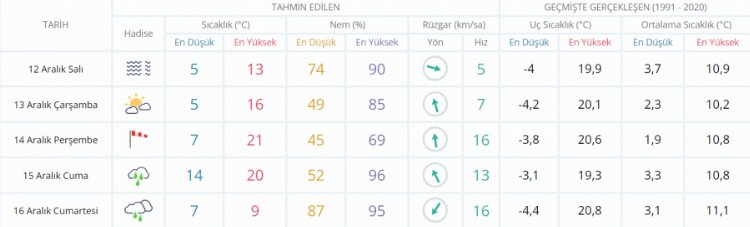 5 GÜNLÜK HAVA DURUMU TAHMİNİ