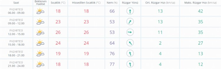Meteoroloji Genel Müdürlüğü tarafından yapılan son değerlendirmelere göre; Ülkemiz genelinin parçalı ve yer yer çok bulutlu, Güney Ege kıyıları, Batı Karadeniz, Doğu Karadeniz kıyıları, Antalya, Isparta, Adana, Osmaniye, Ordu, Artvin çevreleri, Çanakkale'nin güneyi, Balıkesir'in batı kıyıları ile Hatay'ın kıyı kesimlerinin yerel olmak üzere sağanak ve gök gürültülü sağanak yağışlı geçeceği tahmin ediliyor. Gece ve sabah saatlerinde iç ve doğu kesimlerde yer yer pus ve sis bekleniyor.