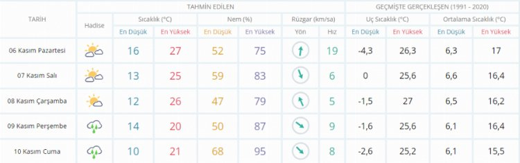 5 GÜNLÜK HAVA DURUMU TAHMİNİ