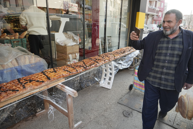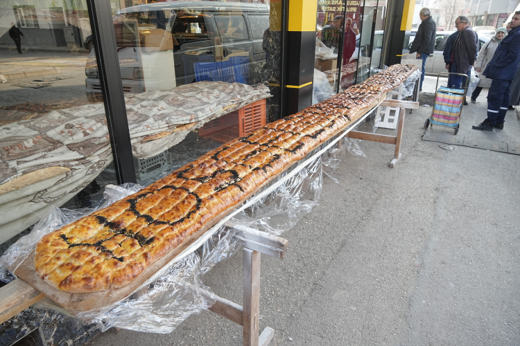 Bursa'da 20 yıldır fırıncılık yapan Subay Özçelik, Ramazan ayının ilk gününde 7 metrelik pide yaptı.