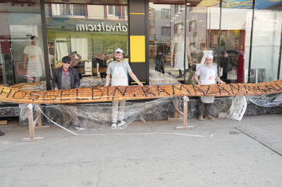 7 metrelik pideyi görünce şaşırdığını belirten Şakir Kılıç ise "80 yaşındayım ilk defa bu kadar uzun pide gördüm" dedi.