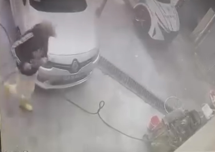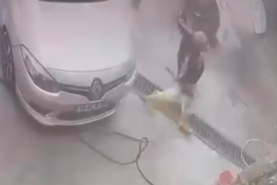 Bursa'nın Yıldırım ilçesinde bir oto yıkamacı müşterisinin bıraktığı aracı yıkamak için tazyikli suyu açtı. Basınçlı suyun etkisiyle elindeki hortumu kaçıran acemi yıkamacı hortumu yakalamak için bir sağa bir sola koştu. Suyla dans edercesine mücadele eden oto yıkamacının renkli anlara iş yerine ait güvenlik kamerasına anbean yansıdı.