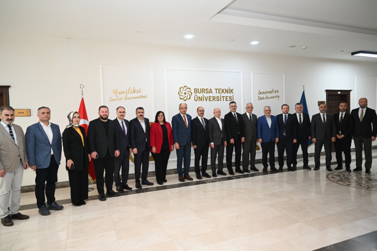 Bursa Teknik Üniversitesi Mimar Sinan Yerleşkesi’nde gerçekleşen ziyarette; Milletvekilleri Muhammet Müfit Aydın, Ayhan Salman, Ahmet Kılıç, Osman Mesten, Mustafa Yavuz, Emel Gözükara Durmaz, Yıldırım Belediye Başkanı Oktay Yılmaz, AK Parti Bursa İl Başkanı Davut Gürkan, Gençlik ve Spor Bakanlığı Yatırım İşletmeleri Genel Müdürü Prof. Dr. Süleyman Şahin yer aldı. Rektörlük toplantı salonunda misafirlerini ağırlayan BTÜ Rektörü Prof. Dr. Naci Çağlar, üniversitenin mevcut durumu, yürütülen projeler ve şehre katkısı üzerine bilgilendirmede bulundu.
