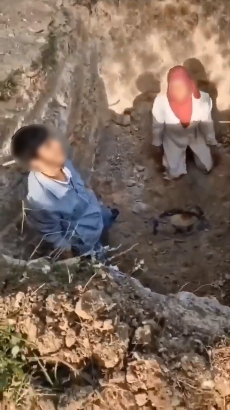 Köpeklerin tedavi edilmediği için öldüğünü iddia eden grup, hayvanların gömüldüğü alana geldi ve cesetleri mezardan çıkararak başka bir yere taşımak istedi. O anlar, olay yerinde bulunan bir kişinin cep telefonuyla kaydedildi.