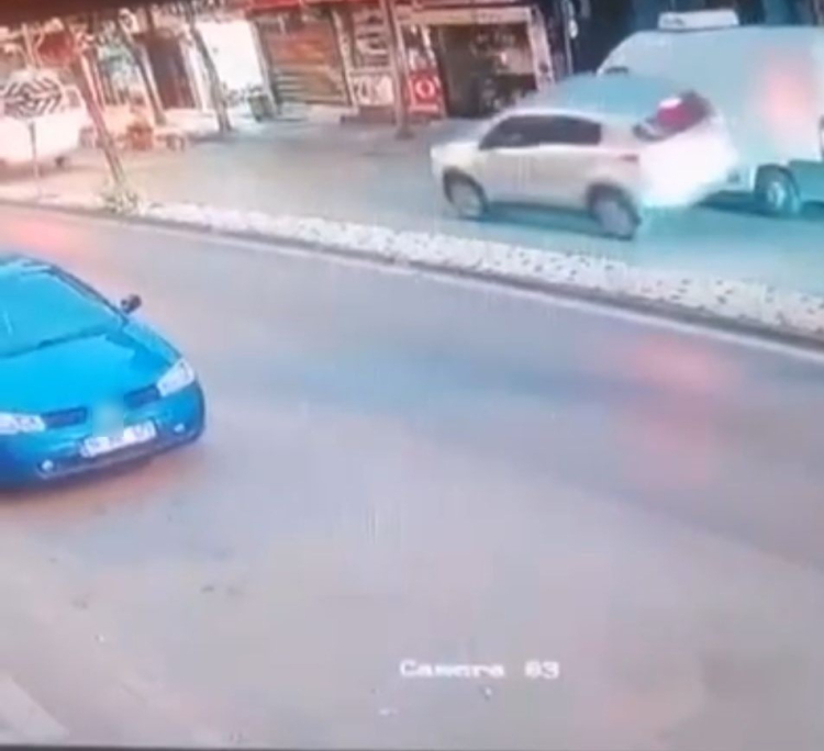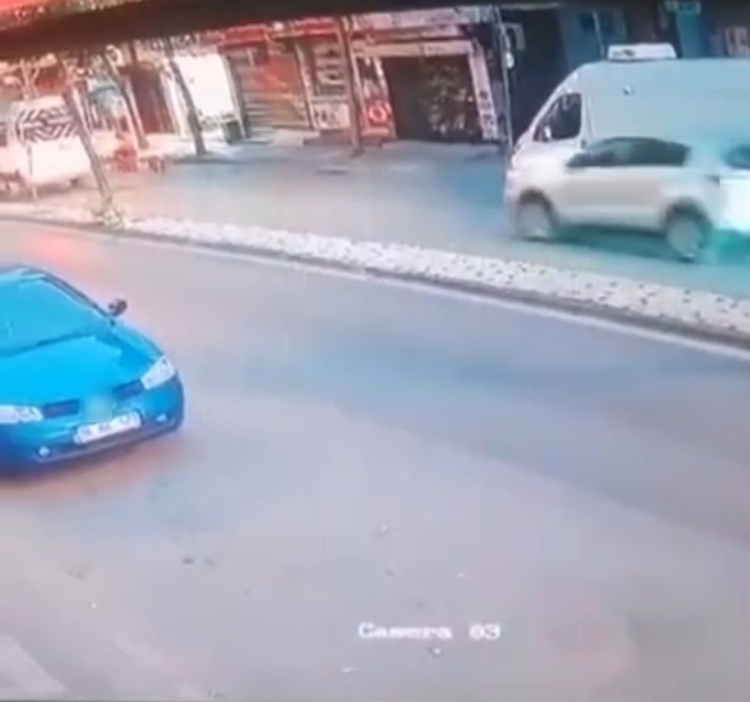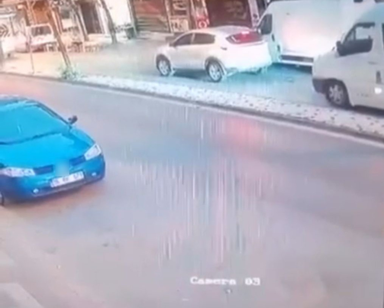 Manevra yapıp tekrar yola koyulan sürücü, hiçbir şey olmamış gibi kaza yerinden uzaklaştı. O anlar güvenlik kamerasına anbean yansıdı.