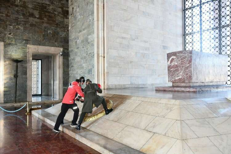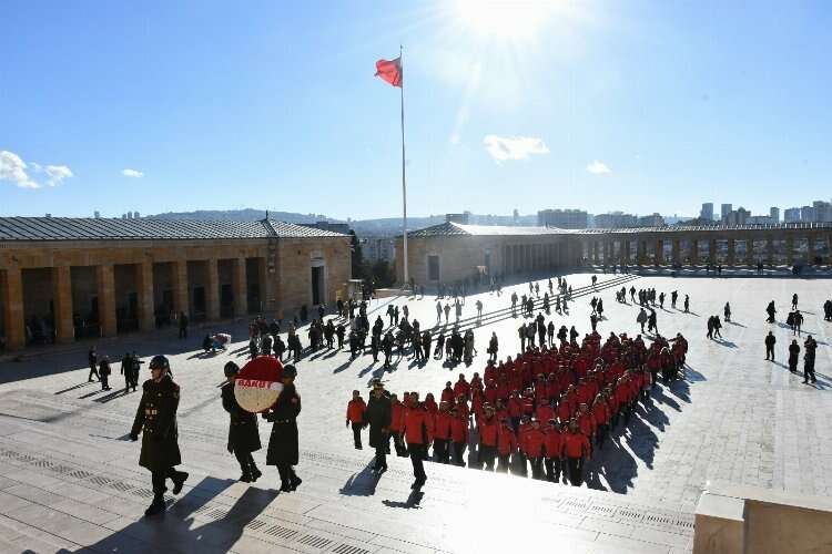 Anıtkabir’de bulunan Aslanlı Yolda başlayan yürüyüş, mozoleye çelenk bırakılması, saygı duruşu ve İstiklal Marşı ile devam etti.