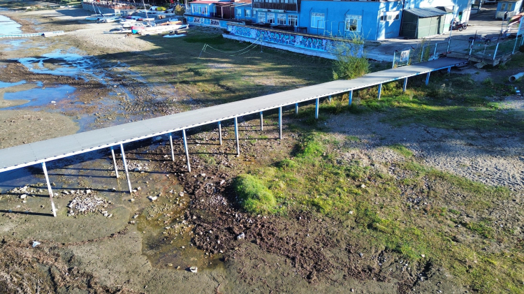 Kıyıdan 100 metre çekilen İznik Gölü günden güne kötüye gidiyor. Gölün en büyük iskelesi ise tamamen karada kaldı. Bir zamanlar suyun içinde yer alan İznik sahilindeki en büyük iskele, su çekilmesinin etkisiyle artık tamamen karada kaldı. Su seviyesindeki bu dramatik düşüş, bölgeye gelen ziyaretçilerin dikkatini çeken ilginç görüntülere sahne oldu.
