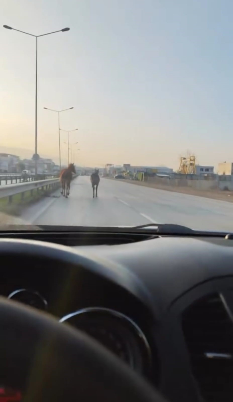 Bursa’da başıboş atlar anayolda tehlike saçtı.