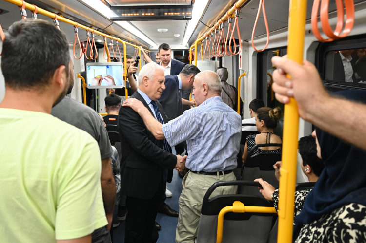 Odunluk İstasyonu’ndan Merinos İstasyonu’na kadar BursaRay ile yolculuk yapan Başkan Mustafa Bozbey, vatandaşlarla samimi bir şekilde sohbet ederek ulaşım konusundaki talep ve görüşlerini dinledi.