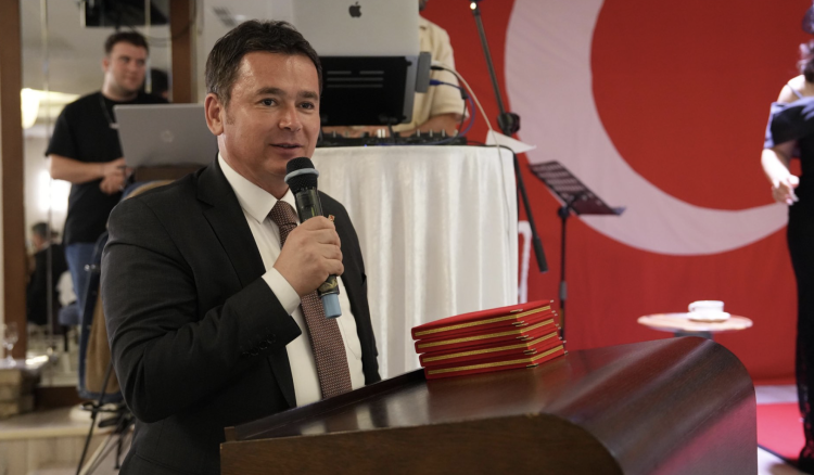 Gece boyunca katılımcılar, Cumhuriyetin 102. yılı onuruna düzenlenen programda müzik eşliğinde keyifli anlar yaşadı. Türk bayraklarıyla süslenen salonda büyük bir coşku hâkimdi.
