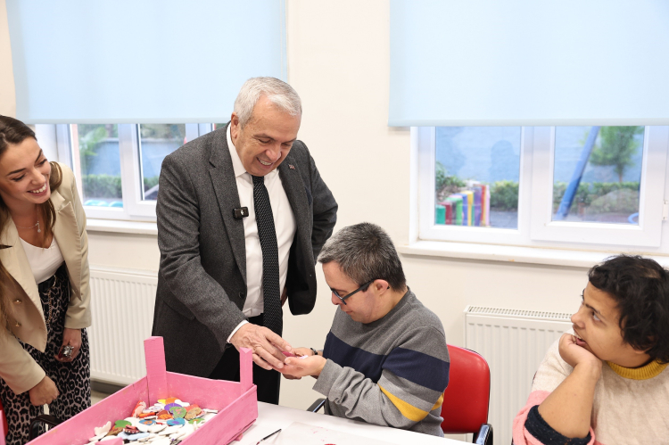 Başkan Şadi Özdemir, ziyareti sırasında belediyenin dezavantajlı bireyler, kadınlar ve gençlere yönelik yürüttüğü projeler hakkında bilgi verdi. Bizim Ev’de görev yapan çalışanların duyarlılığına dikkat çeken Başkan Şadi Özdemir, katılımcıların isteklerini dinledi. Şadi Özdemir, “Amacımız, sorunlarınıza çözümler üretmek ve sosyal hayata katılımı artıracak projeleri hayata geçirmeye devam etmektir” dedi.