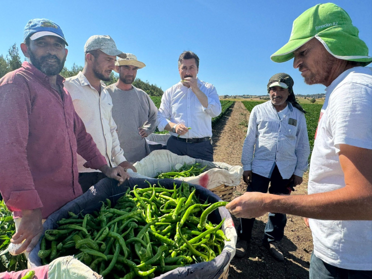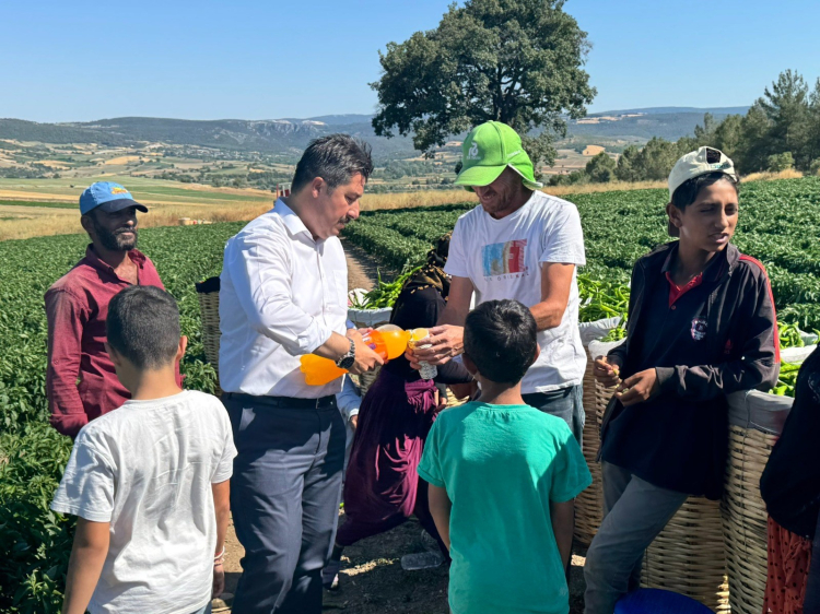 Yenişehir Belediye Başkanı Ercan Özel, tarlada biber toplayan işçileri ziyaret ederek, soğuk meşrubat ikramında bulundu.