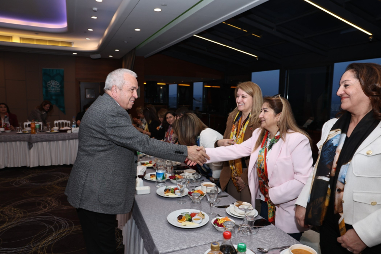 Nilüfer Belediye Başkanı Şadi Özdemir, 8 Mart Dünya Kadınlar Günü nedeniyle kadın muhtarlar, belediye meclis üyeleri, başkan yardımcıları ve müdürlerle iftar programında bir araya geldi.
