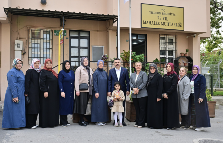 Yıldırım Belediye Başkanı Oktay Yılmaz, 75. Yıl Mahallesi'nde muhtar Nurdem Aydemir ile mahallenin ihtiyaçlarını ele aldı ve 75. Yıl Kadın Eğitim Merkezi'ni ziyaret etti. Yılmaz, kadınların topluma katkısına vurgu yaptı, destek projeleri sürecek.