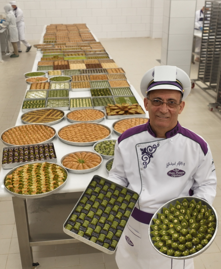 Şerbetiyle birlikte fokurdayan baklavalar insanın iştahını kabartırken, merdiven altı diye tabir edilen ucuz baklavalardaki ıspanak, bezelye ve yer fıstığı gibi bir çok farklı hileler ise ustalar tarafından tek tek gün yüzüne çıkarıldı. Cevizli ve fıstıklı baklavadaki oyunların insanın cebine hitap ettiğini ancak ağız tadını ve insan sağlığını da olumsuz etkilediğini söyleyen 55 yıllık geçmişe sahip Hacı Hasan Oğulları Yönetim Kurulu Başkanı Yüksel Aktaş, "Bayram için verilen siparişlere yetişmeye çalışıyoruz. Yaklaşık 200 çeşit baklava var. Fıstıklı baklavadan dilber dudağına, ballı kadayıftan gelin bohçasına kadar binbir çeşit ürünlerimizle tezgahlardaki yerimizi alıyoruz. Ancak bunların başını fıstıklı ile cevizli baklava çekmektedir. 3,5-4 kiloluk tepsiye 600 gram fıstık gidiyor. Bizim üretmiş olduğumuz baklava çeşitlerinin kilosu 800 liradan başlamaktadır. Türkiye'de kaliteli baklava dendiği zaman, 800'den başlayıp bin 800 liraya kadar özel üretim baklava fiyatları vardır. Kaliteli deyip de, 300-450 liraya satıyorsan, bunun içerisine 100 gram fıstık koyup tereyağı koymazsın ancak maliyetini karşılarsın. Baklava, baklavacıdan alınır. Her yerden baklava alınmaz. İnsanlarımız artık alacakları yeri iyi biliyor. Biz kaliteden ödün vermeden gerçek cevizli baklavayı 800'den, fıstıklı baklavayı bin 200 TL'den başlayan fiyatlara satabiliyoruz. Bunun altında baklava olmaz" dedi.