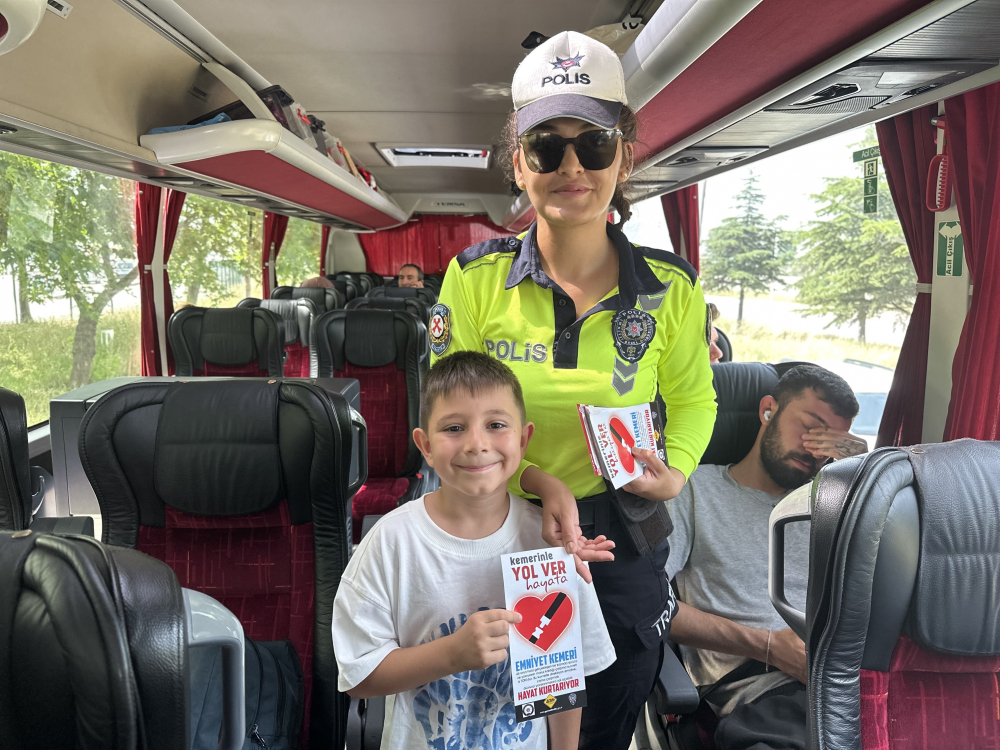 Yolcular bilinçlendirildi ve emniyet kemerinin önemine dikkat çekildi.