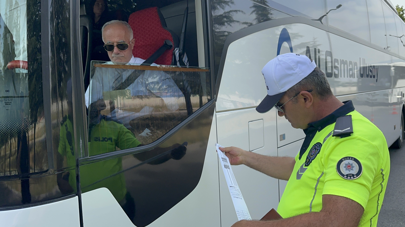 Bursa'da 9 günlük Kurban Bayramı tatili öncesi trafikte huzur ve güvenliğin sağlanması amacıyla Bursa Şehirlerarası Otobüs Terminali'nde otobüsler teker teker durduruldu.