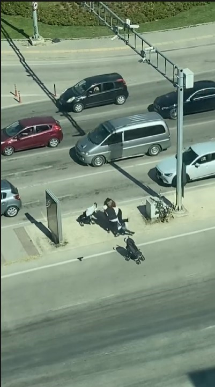 Kendilerini acındırıp para koparmak için yanlarında bebek arabası gezdiren iki farklı dilenci grubu arasında mıntıka tartışması yaşanınca taraflar birbirine girdi. Tekme tokat kavga sırasında bebek arabalarından biri orta refüjden yola inip ilerlemeye başladı. Üzeri açılan bebek arabasında bebeğin olmadığı dilencilerin istismar yoluyla vatandaşları nasıl kandırdıkları bir kez daha gözler önüne serildi.