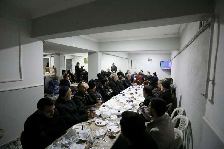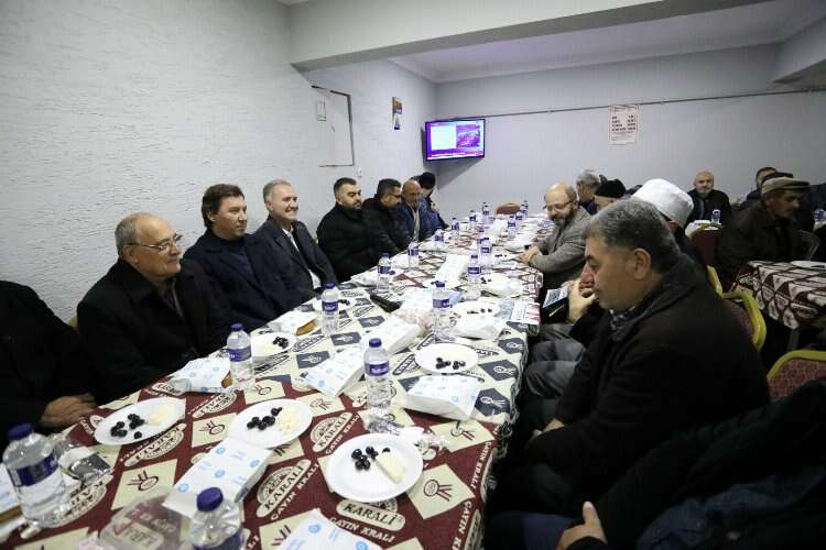 Belediye Başkanı Alper Taban ile beraberindeki AK Parti İlçe Başkanı Mustafa Durmuş, Belediye Başkan Yardımcısı Emin Dündar, meclis üyeleri ve AK Partili yöneticilerin katılımıyla gerçekleşen Bereket Sofrası etkinliğinde, sabah namazının kılınmasının ardından caminin avlusunda bulunan çay ocağında cemaatle birlikte kahvaltı sofrasına geçildi.