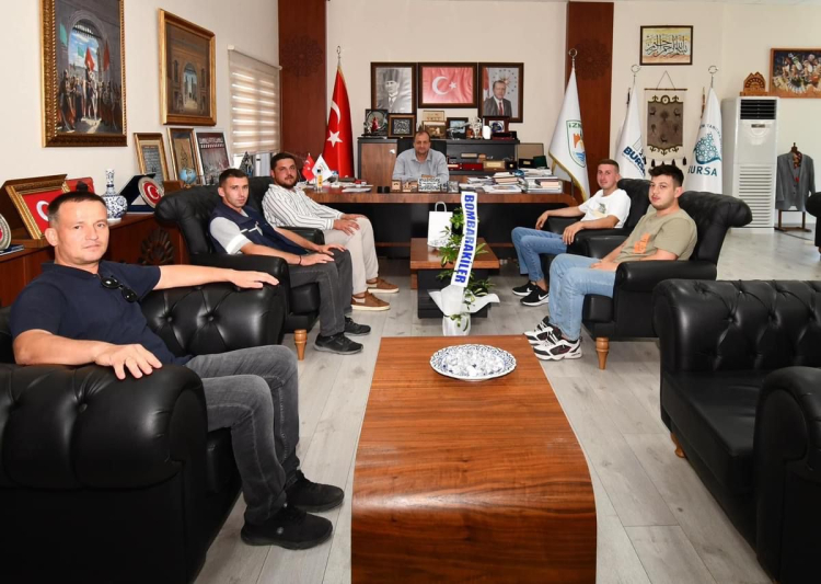 İznikspor taraftar gurubu Bombarakiler, İznik Belediye Başkanı Kağan Mehmet Usta’yı makamında ziyaret etti.