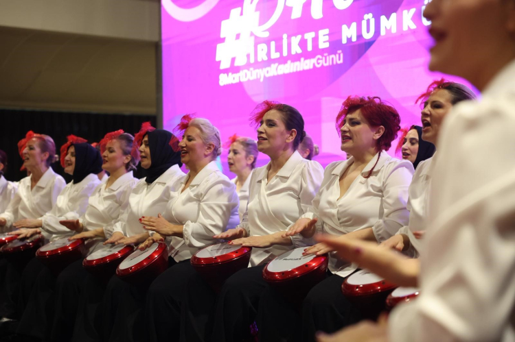 Konuşmaların ardından sahne alan halk dansları ekibi, Nilüfer Belediyesi Kadın Korosu ve Eşitiz Ritim Grubu'nun gösterileri izleyenlerden büyük alkış aldı. Program, Başkan Mustafa Bozbey ve Seden Bozbey'in kadınlarla birlikte Dünya Kadınlar Günü için hazırlanan pastayı kesmesinin ardından sona erdi.
