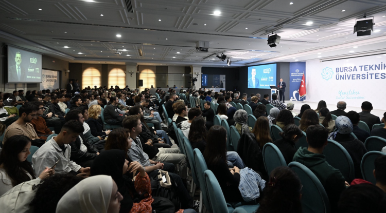 BTSO Başkanı İbrahim Burkay, Bursa Teknik Üniversitesi'nde "BTÜ Konuşmaları" etkinliğinde öğrencilerle buluştu. "Bursa Büyürse Türkiye Büyür" temasıyla konuşan Burkay, gençlere tecrübelerini aktarırken Türkiye ekonomisine dair değerlendirmelerde bulundu.