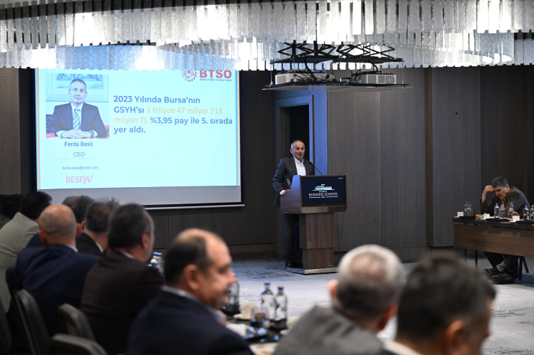 Bursa'nın 2023 yılında GSYH'sinin 1,4 trilyon TL olarak kayıtlara geçtiğini ifade eden Besli, kentin Türkiye'nin toplam GSYH'si içinden aldığı payın ise son 5 yılda 30 baz puan gerilediğini belirtti. Bursa'nın 2023'te yüzde 3,95'lik payla İstanbul, Ankara, İzmir ve Kocaeli'nin ardından 5'inci sırada yer aldığını söyleyen Besli, "Bursa'nın Türkiye'nin toplam GSYH içindeki payı son 5 yılda yüzde 4,25'ten 3,95'e geriledi. Bunu yeniden yüzde 5'ler düzeyine taşımak için yapılması gerekenler neler münazara edilmesi gerekiyor. Bu dönemde özellikle sektör bazında baktığımızda imalat sanayiindeki düşüş dikkat çekiyor. 2018-2023 döneminde imalat sanayi payı 8,33'den 7,32'ye düşmüş. Sanayinin gelişmemiş olması kenti geriye çekiyor. Diğer taraftan Bursa'da son 5 yılda ihracat yüzde 11 artarken, ithalat yüzde 33 artış göstermiş. Bursa ekonomisinin sürdürülebilirliği açısından bu önemli bir uyarı niteliği taşıyor. İthalatın yüksek artış hızının uzun vadede yerel ekonomiyi kırılgan hale getirebileceği ve dışa bağımlılığı artırabileceği göz önünde bulundurulmalı. Bu noktada, yerel yönetimlerin ve iş dünyasının, ihracatın artırılmasına yönelik stratejik adımlar atması kritik önem taşıyor. Daha yüksek katma değerli üretim, yerli teknolojinin desteklenmesi ve sanayi yapısının dönüşümü gibi politikalar, bu dengenin sağlanmasında kilit rol oynuyor." dedi.