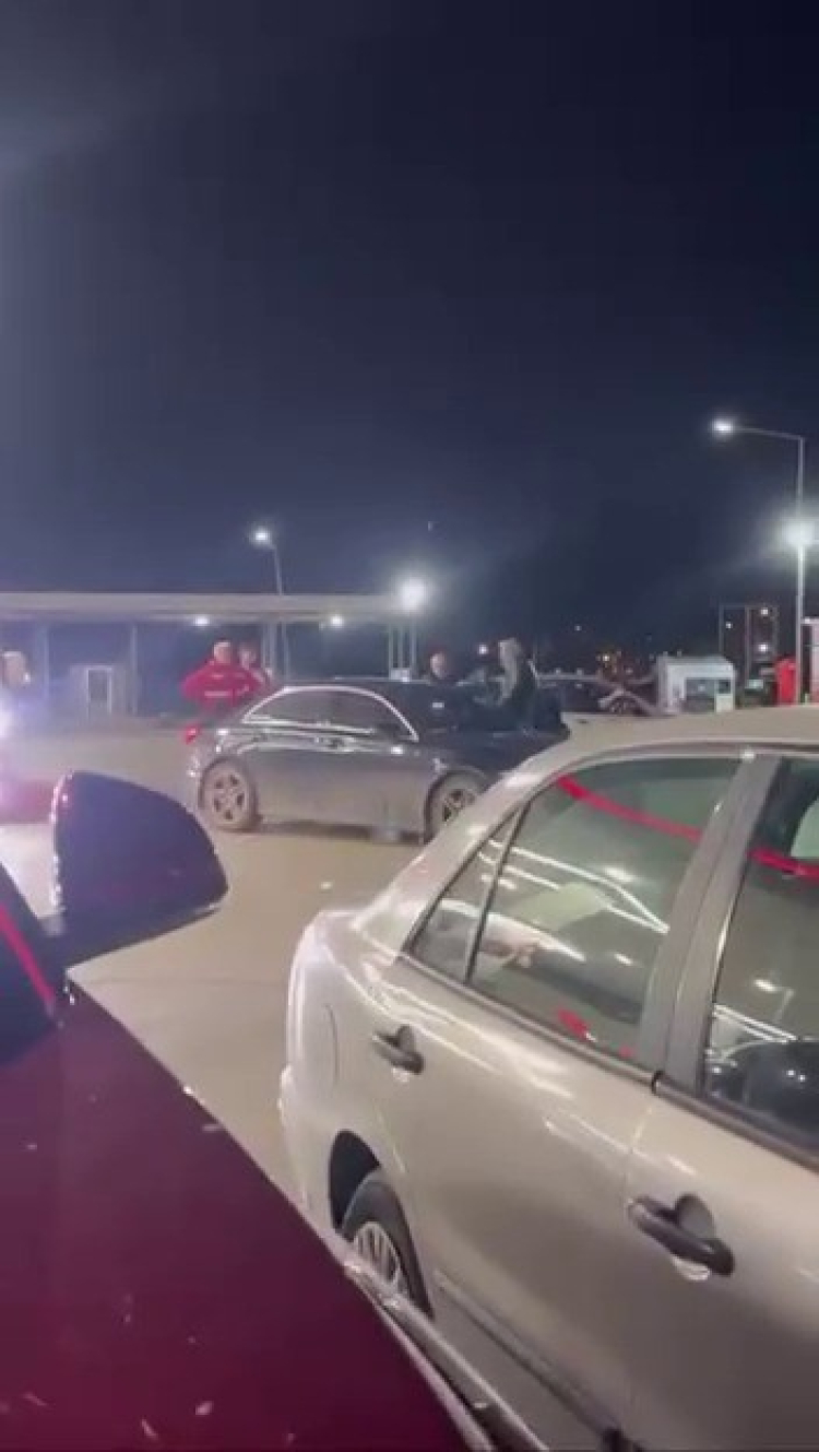 Akaryakıt istasyonunu boks ringine çeviren şahıslar kameraya anbean yansıdı.