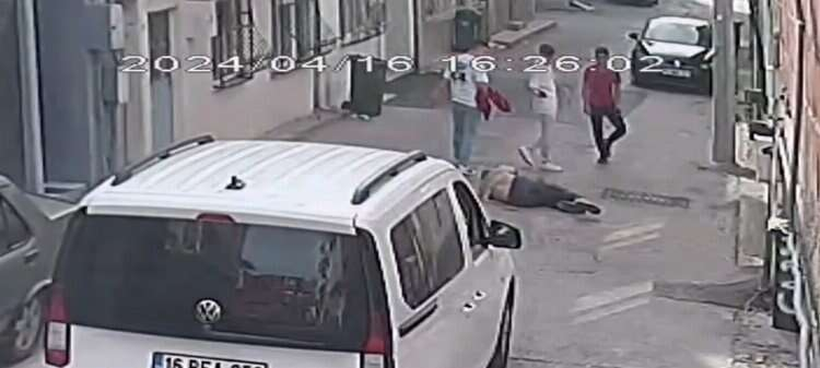 Bursa'da 3 genç, tartıştıkları bir kişiyi acımasızca darp edip, kafasına defalarca tekme attı.