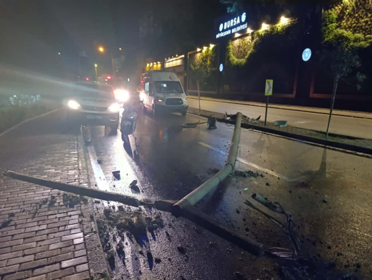 Bursa'da meydana gelen kazada otomobil elektrik direğini devirip karşı yola savruldu.