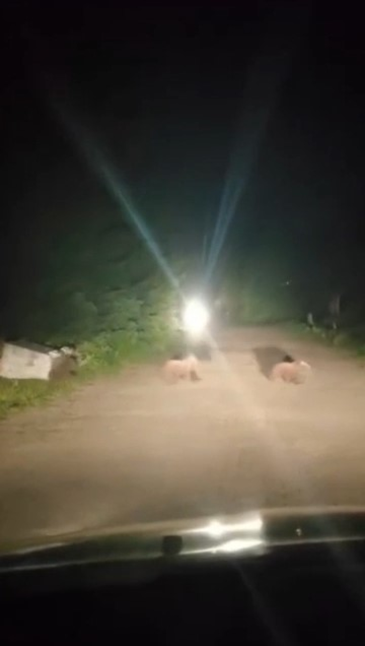 Ayı ailesinin görüntülerini o sırada yoldan geçen bir otomobil sürücüsü cep telefonu ile kaydetti. İnsanlardan rahatsız olan ayılar hızla uzaklaşarak ormanın derinliklerinde kayboldu.