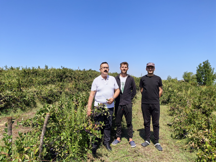 İnegöl Ziraat Odası Başkanı Sezai Çelik, genç çiftçiler Samet Özcan ve Emircan Baydur'un yetiştirdiği Bahçekaya Mahallesi'nde aronya bahçesini ziyaret etti.