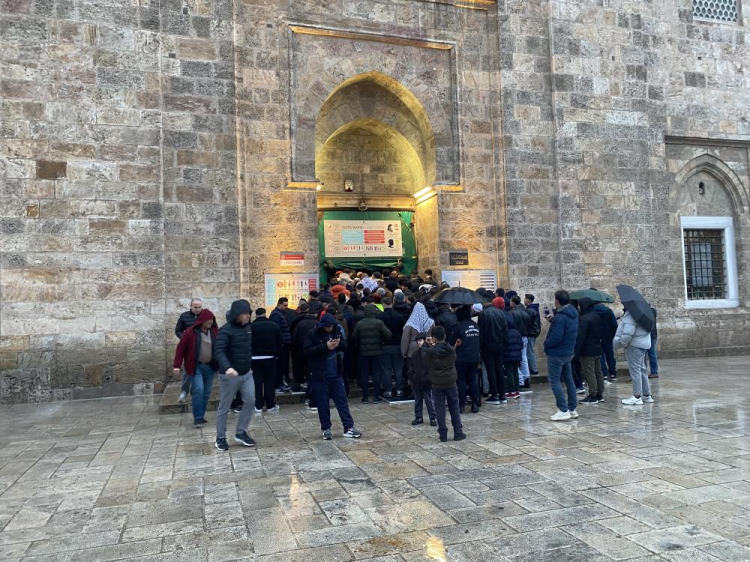 Binlerce vatandaş, bayram namazı için Ulu Cami’ye akın etti; cami dolunca cemaat yağmur altında avluda saf tutarak ibadetini gerçekleştirdi.