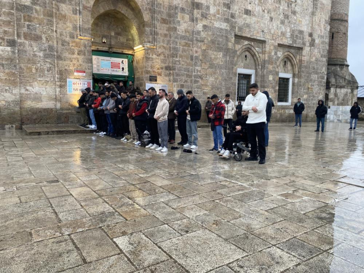 Yağmura aldırış etmeyen cemaat, birlikte namaz kılmanın huzurunu yaşarken, ortaya birlik ve beraberlik görüntüleri çıktı. Avluda saf tutan vatandaşlar, dualar eşliğinde bayram sevincini paylaştı.