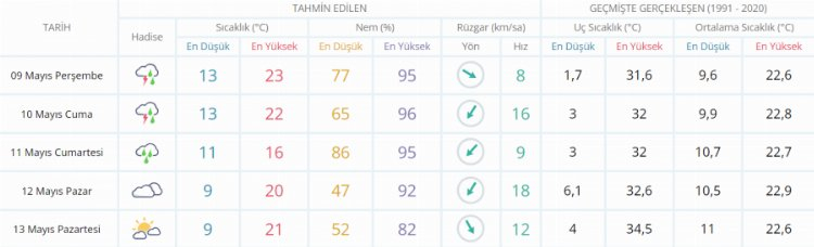 Parçalı yer yer çok bulutlu, güney ve doğusu ile Edirne ve Kırklareli çevrelerinin sağanak ve gök gürültülü sağanak yağışlı geçeceği tahmin ediliyor.
