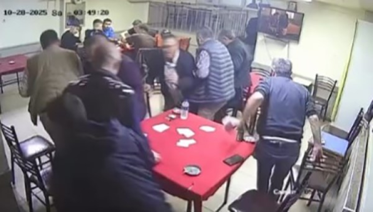 Deprem anında bir kıraathanede oyun oynayan grubun kaçma anları güvenlik kamerasına yansıdı.