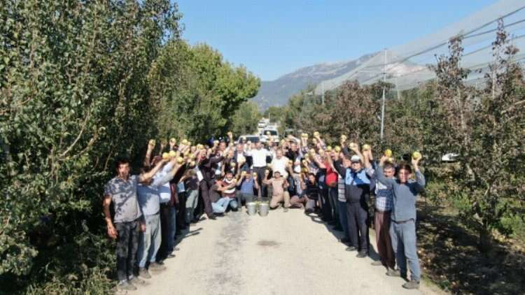 Bursa'da dikkat çeken mesaj: 'Bizim elimiz sadece armut toplamaya kalkar'