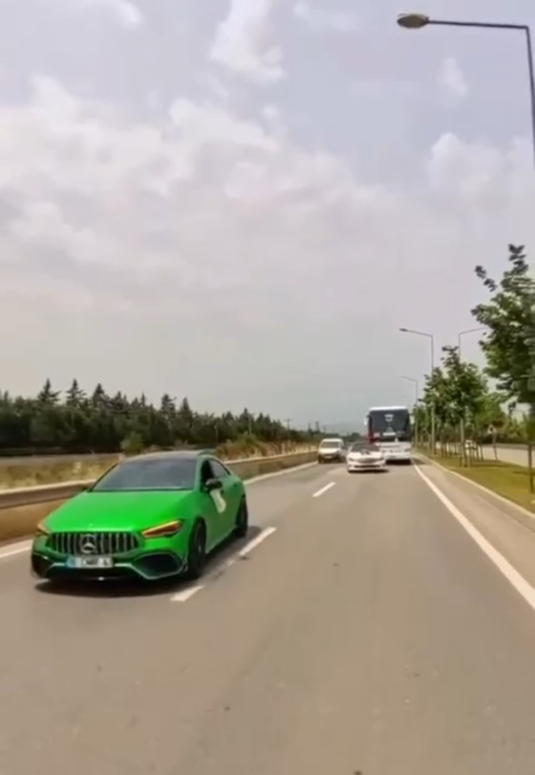 Bursa'da düğün konvoyunda yer alan süslenmiş bir otobüs dikkat çekti. Düğün aracı gibi süslenen otobüsle yapılan şehir turu ilginç anlara sahne olurken, konvoydaki bazı otomobil sürücülerinin trafiği tehlikeye düşüren hareketleri tepkilere neden oldu. Araçların aniden fren yapması, zikzaklar çizerek ilerlemesi ve yolda diğer sürücülerin önünü kesmeleri kısa süreli paniğe yol açtı. O anlar kameraya yansıdı.