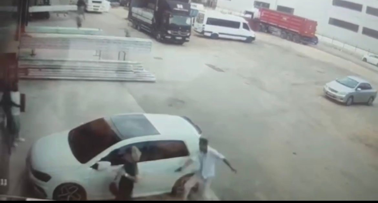 Öfkeli adam eşinin kendisini aldattığını öne sürdü. Olay anı güvenlik kamerasına anbean yaşarken, zanlı çok geçmeden yakalandı.