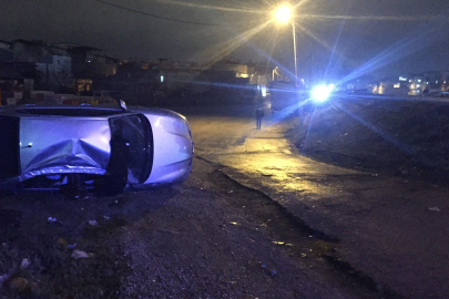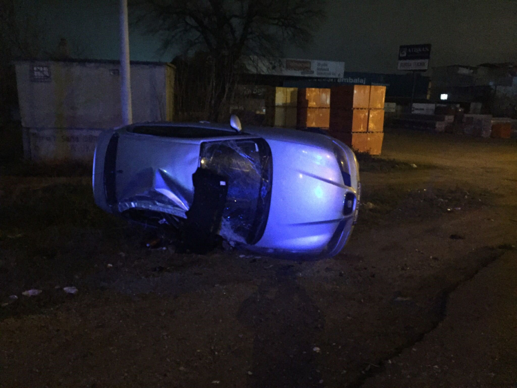 Bursa'da yağış sonrası kayganlaşan yolda sürücüsünün kontrolünden çıkan otomobil takla attı.